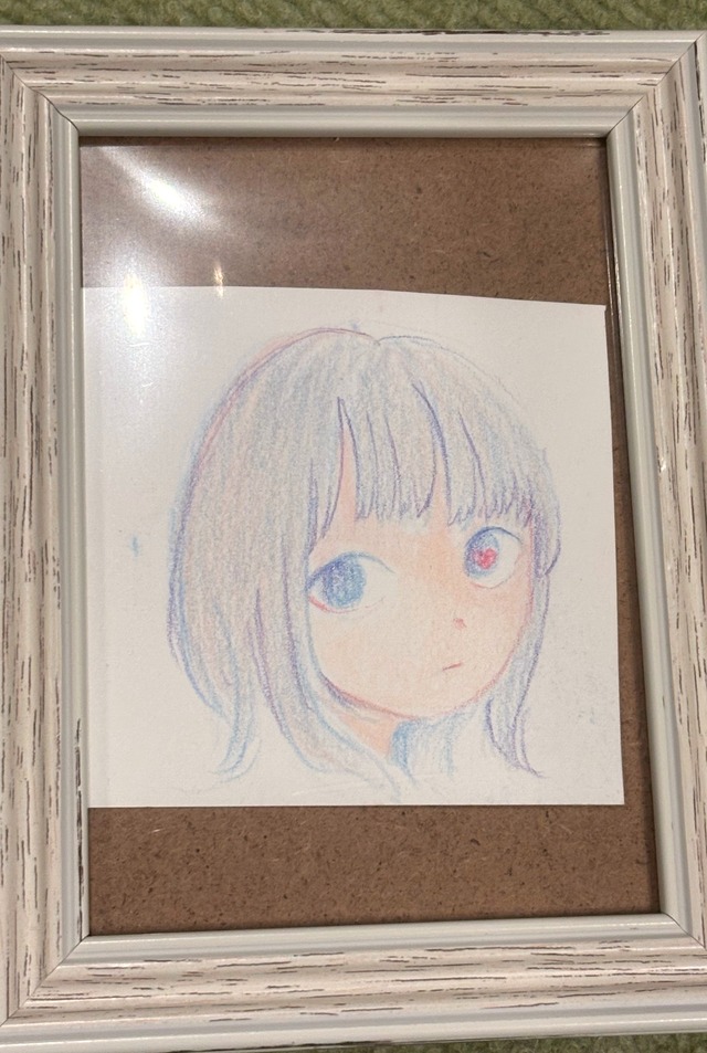 サイズ: 21cm × 29.7cm(額込み) 画材:色鉛筆・画用紙・インク 正面にサイン有り 仮額付き